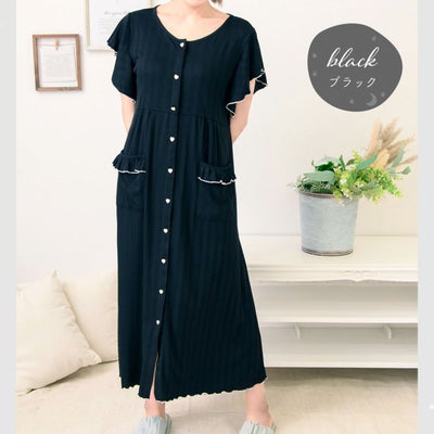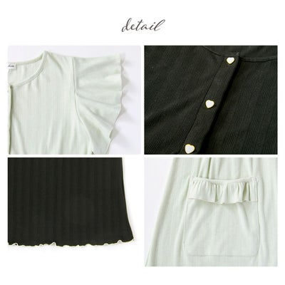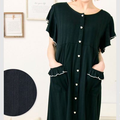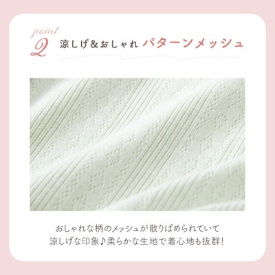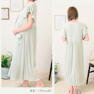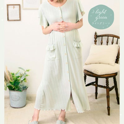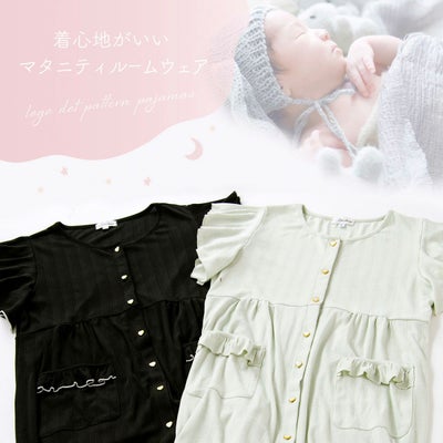 着心地が良いマタニティルームウェア。涼しげでおしゃれなパターンメッシュでひらひらの袖が可愛い。授乳と着脱が楽なフロントスナップ。
