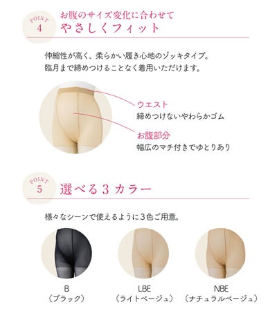 また、ウエスト部分もやわらかなゴムで、お腹を締め付けず、臨月まで安心してご利用いただけます。