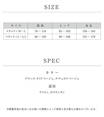 マタニティL~LL:腹囲88~120 ヒップ90~108 身長155~170
