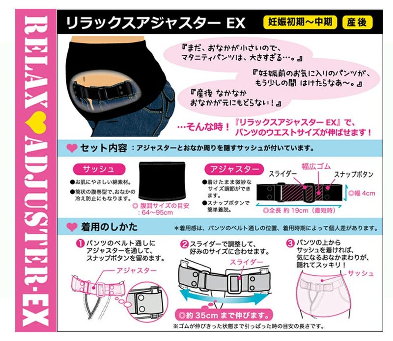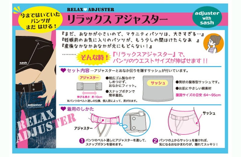 他の画像を見る 販売価格 ¥ 2,310 税込 カートに入れる お気に入りに登録する メール便送料無料 犬印本舗 アジャスターパンツのサイズを最大約35cm調整できる マタニティ 犬印本舗 リラックスアジャスターEX CT-021 パンツウエストサイズ調整