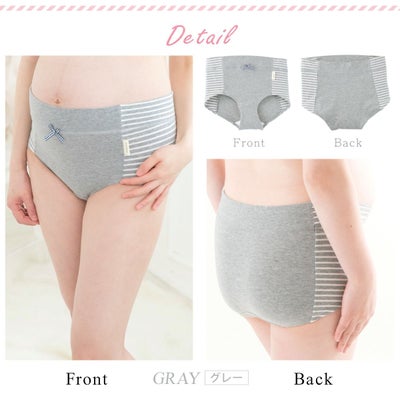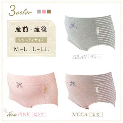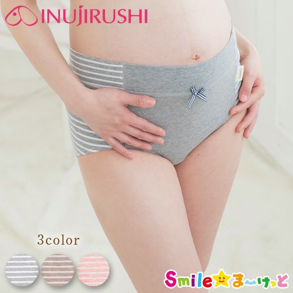 犬印本舗 産前産後兼用 らくちんショーツ パンツ 妊娠期間中 マタニティ用 産後用 授乳期用 ボーダー柄 綿 ポリウレタン 洗濯ネーム外付け ウエストゴムなし 足口ゴム マチ裏綿100% 上下セット お揃いブラジャー有 綿混素材 ナチュラル グレー ピンク モカ 灰色 茶色 おしゃれ かわいい M L LL エム エルサイズ エルエルサイズ ポリウレタン素材 メール便対応可 メール便送料無料 税別5000円以上送料無料 即日発送可 即納 在庫有