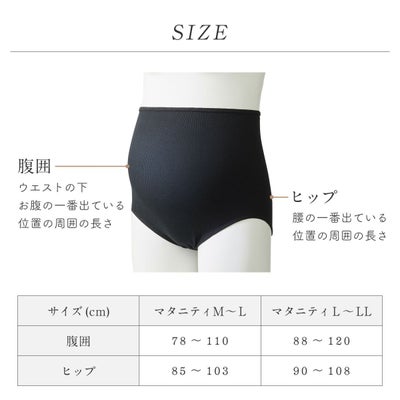 *サイズ:(ヒップcm)マタニティM~L 85~103, L~LL 90~108・(腹囲cm)マタニティM~L 78~110, L~LL 88~120