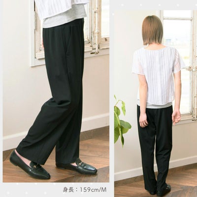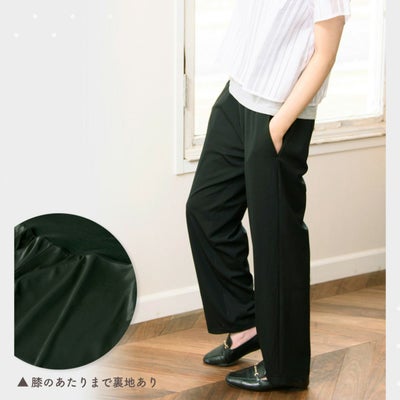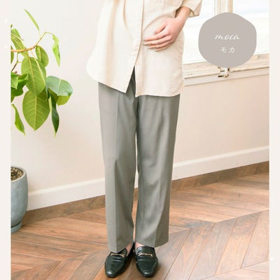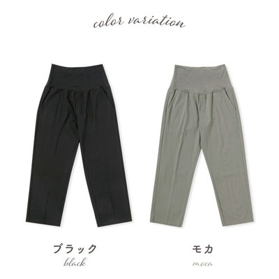 着心地が良いマタニティルームウェア。ほどよいストレッチとワイド感のテーパードパンツ。ひんやり涼しい接触冷感。