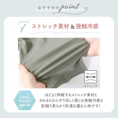 生地は、ほどよく伸縮するストレッチ素材とひんやり涼しい接触冷感で履き心地抜群です。