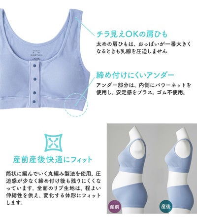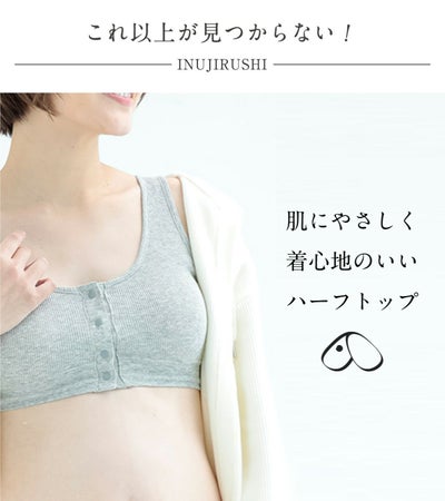 BR1697 犬印 マタニティ 犬印本舗 INUJIRUSHI 産前産後 オーガニックコットン 綿100%・肌にやさしいハーフトップ(リブ)ママと犬印共同開発品 ノンワイヤーブラジャー 授乳ブラジャー ハーフトップ フロントオープン