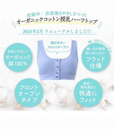 【リニューアル】授乳ブラ 犬印 マタニティ 犬印本舗 産前産後 オーガニックコットン 綿100% 肌にやさしいハーフトップ リブ BR1697 ノンワイヤーブラジャー 授乳ブラジャー ハーフトップ