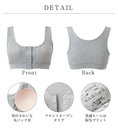 締めつけ感のないやさしい着け心地。着脱しやすいフロントオープンタイプ。