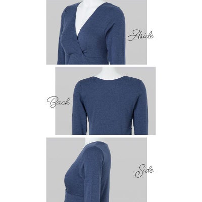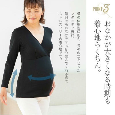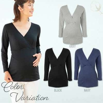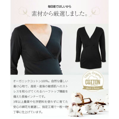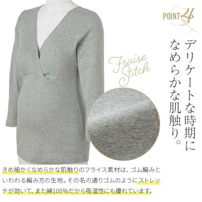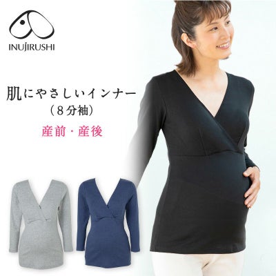 マタニティ 犬印本舗 カシュクールオープン仕様 妊婦 出産準備 産前産後 インナー 肌にやさしいインナー(8分袖)綿100% ブラック グレー ネイビー M L TS3776