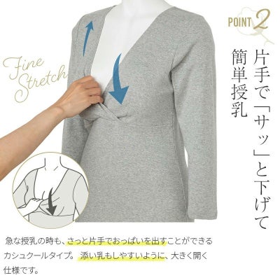 なめらかな肌触りのフライス生地の授乳8分袖インナー。