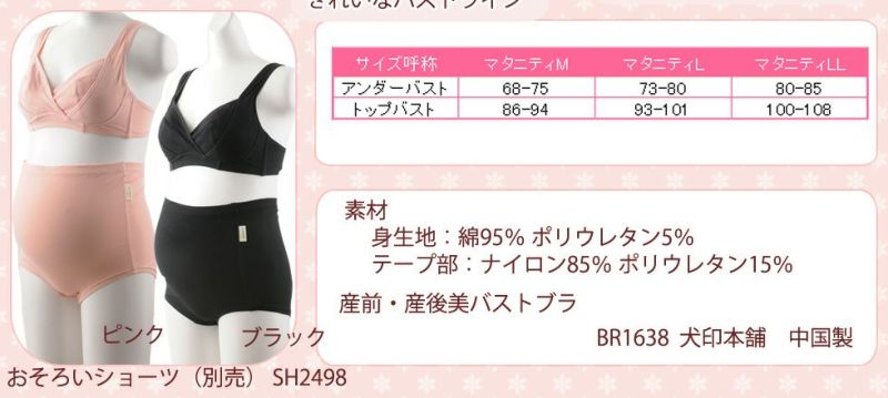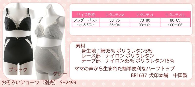 他の画像を見る 販売価格 ¥ 2,640 税込 カートに入れる お気に入りに登録する メール便送料無料 マタニティ ブラジャー 授乳ブラ ノンワイヤー 犬印本舗 リフトアップ 犬印 犬印マタニティ 犬印本舗 産前産後兼用 リフトアップ調節機能付ブラジャー ノンワイヤーブラジャー 在庫切れ