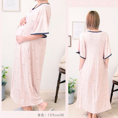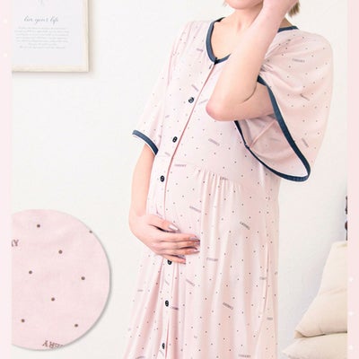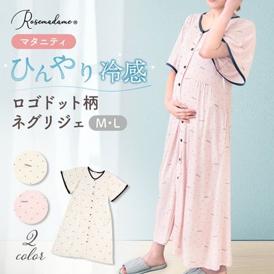 【新商品】マタニティ パジャマ 半袖 マタニティウェア ネグリジェ フロントスナップ 接触冷感 ロゴドット柄ネグリジェ 春 夏 肌にやさしい 出産準備 産前産後 入院着 授乳可能 授乳服 妊婦 妊娠 ローズマダム