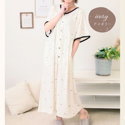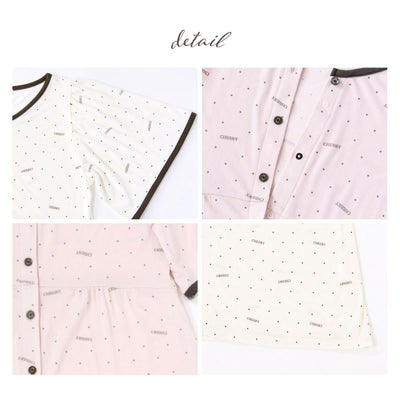 ■マタニティ パジャマ 半袖 マタニティウェア ネグリジェ フロントスナップ 接触冷感ロゴドット柄ネグリジェ 春 夏 肌にやさしい 出産準備 産前産後 入院着 授乳可能 授乳服 妊婦 ママ 妊娠 レディース おしゃれ アイボリー ピンク M L