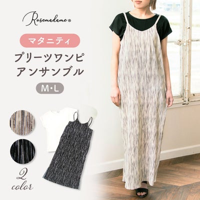 【新商品】マタニティ ワンピース 半袖 春夏 マタニティウェア ワンピアンサンブル キャミワンピ ロング丈 ゆったり 肌にやさしい 産前産後 授乳可能 妊婦 ママ 妊娠 ローズマダム レディース おしゃれ プリーツ