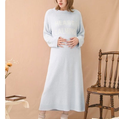 ■マタニティ ワンピース 長袖 秋冬 マタニティウェア モコモコニットルームワンピース ロング丈 ゆったり 肌にやさしい モコモコウェア 産前産後 授乳可能 妊婦 ママ 妊娠 出産祝い プレゼント ローズマダム レディース おしゃれ チャコール ベージュ サックス M L
