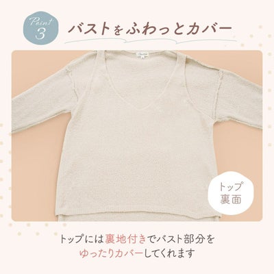 ゆったりシルエットで大きなお腹も締め付けないので、産前から産後(授乳期)まで長く着られます。