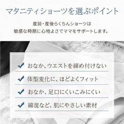 肌にやさしいコットンリッチ素材でウエストゴム不使用のマタニティショーツ。
