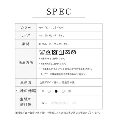 産前から産後におりものなどの変化がわかりやすいように、クロッチ部分は綿100%の白生地を袋縫いしています。