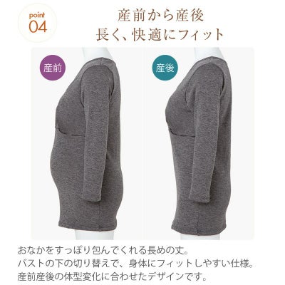 妊娠初期〜後期、出産後も長く着用いただけます。