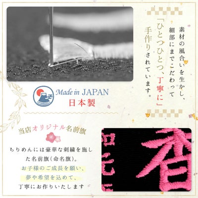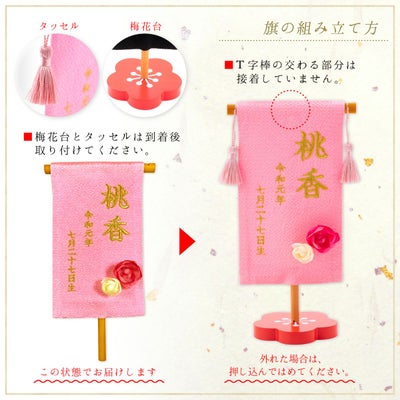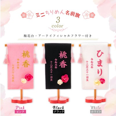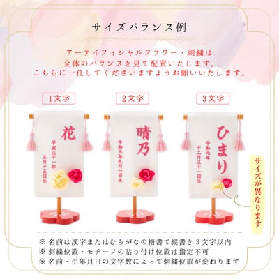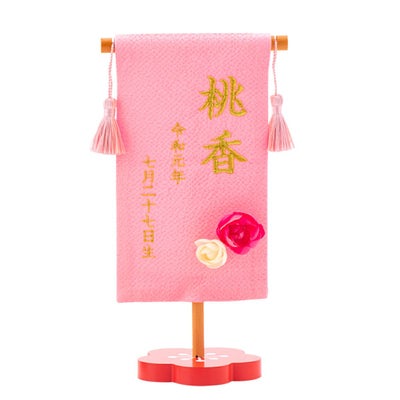 名前旗 女の子 刺繍 雛人形 かわいい ミニ 花 ちりめん 命名旗 刺繍旗