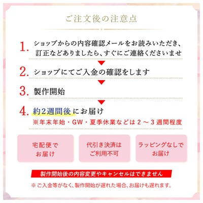 名入れ商品・受注生産品・食品は、到着後7日以内でも返品交換の対象外となります。