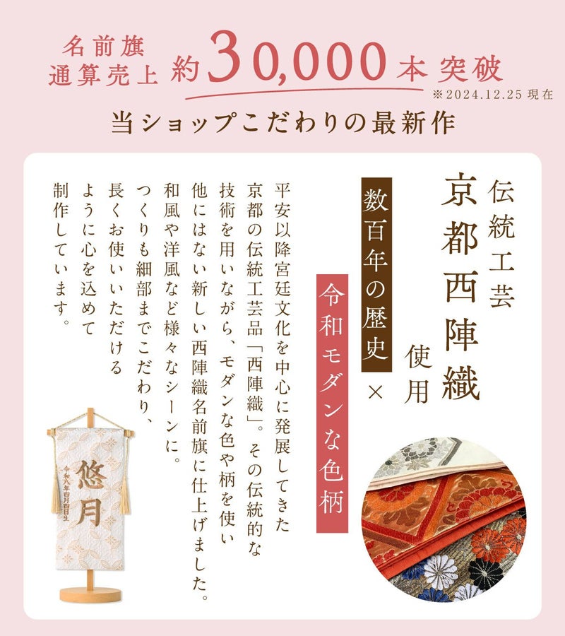 他の画像を見る 販売価格 ¥ 11,200 税込 詳細を見る お気に入りに登録する 送料無料 コンパクトな雛人形に合うサイズ感で、雛人形を引き立ててくれる西陣織の名前旗 【新色登場!!】女の子 雛人形 ひな人形 雛祭り 名前旗 男の子 五月人形 兜 端午の節句 節句人形 2026年 節句飾り 西陣織 京都西陣織 刺繍名前旗 名入れ 名入れ刺繍 タペストリー 命名旗 命名書 コンパクト ギフト