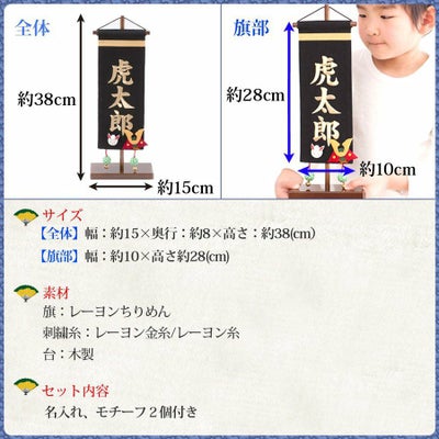 初節句のお祝いギフトにも最適! 五月人形と一緒に飾ればより一層華やかに! 名前旗 男の子 刺繍 五月人形 コンパクト 兜 干支モチーフ ちりめん 命名旗