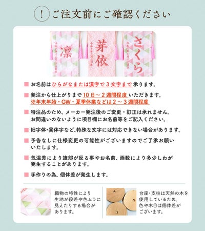 ●お名前はひらがなまたは漢字で3文字まで承ります。