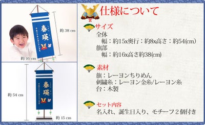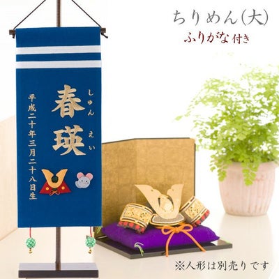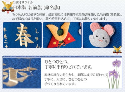 お子様のお名前を刺繍でお入れする名前旗 節句人形(ひな人形・五月人形・こいのぼり・兜)などと一緒にお飾り頂いたり お食い初めやお宮参り、七五三のお祝いの席にも最適です●生年月日とふりがなも入るタイプです●▼ふりがなが不要な方はこちら▼お名前のみの小さいサイズもあります