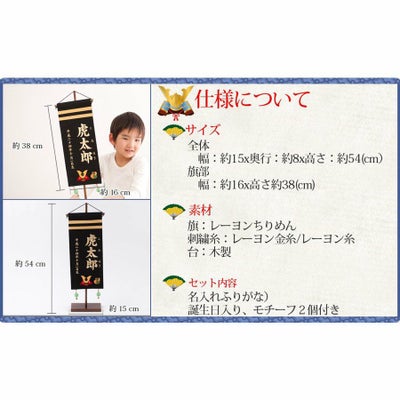 初節句のお祝いギフトにも最適! 五月人形と一緒に飾ればより一層華やかに! 名前旗 男の子 刺繍 五月人形 兜 干支モチーフ ちりめん 命名旗