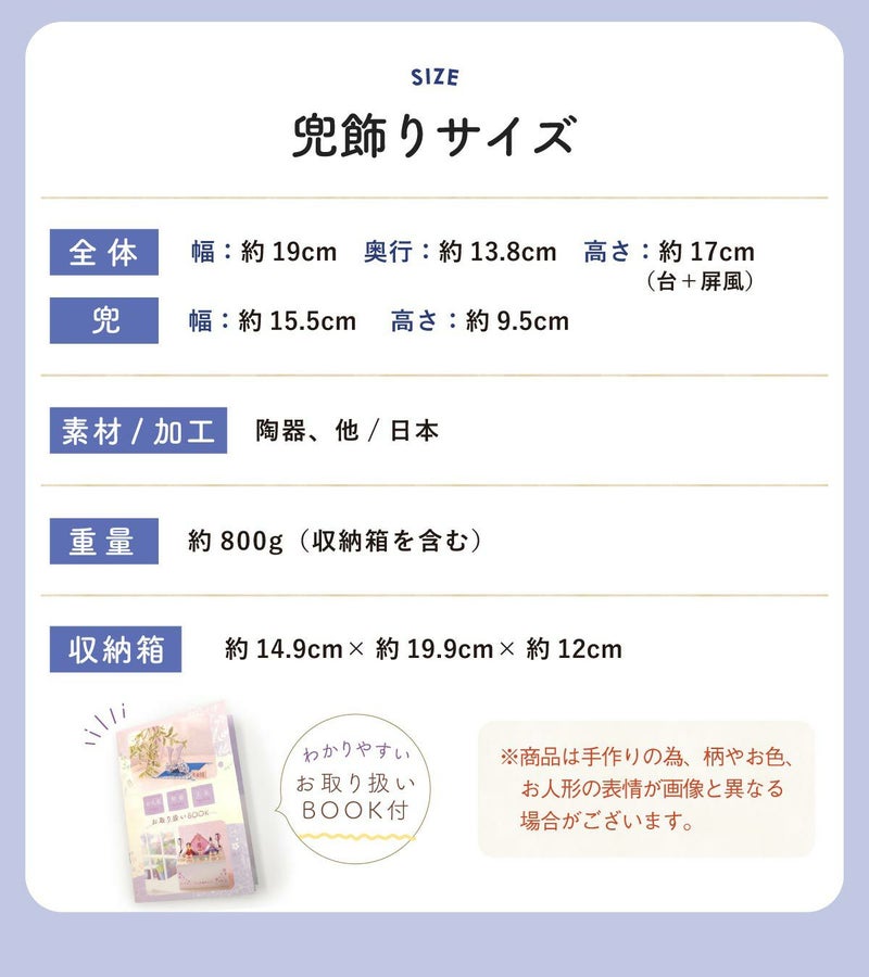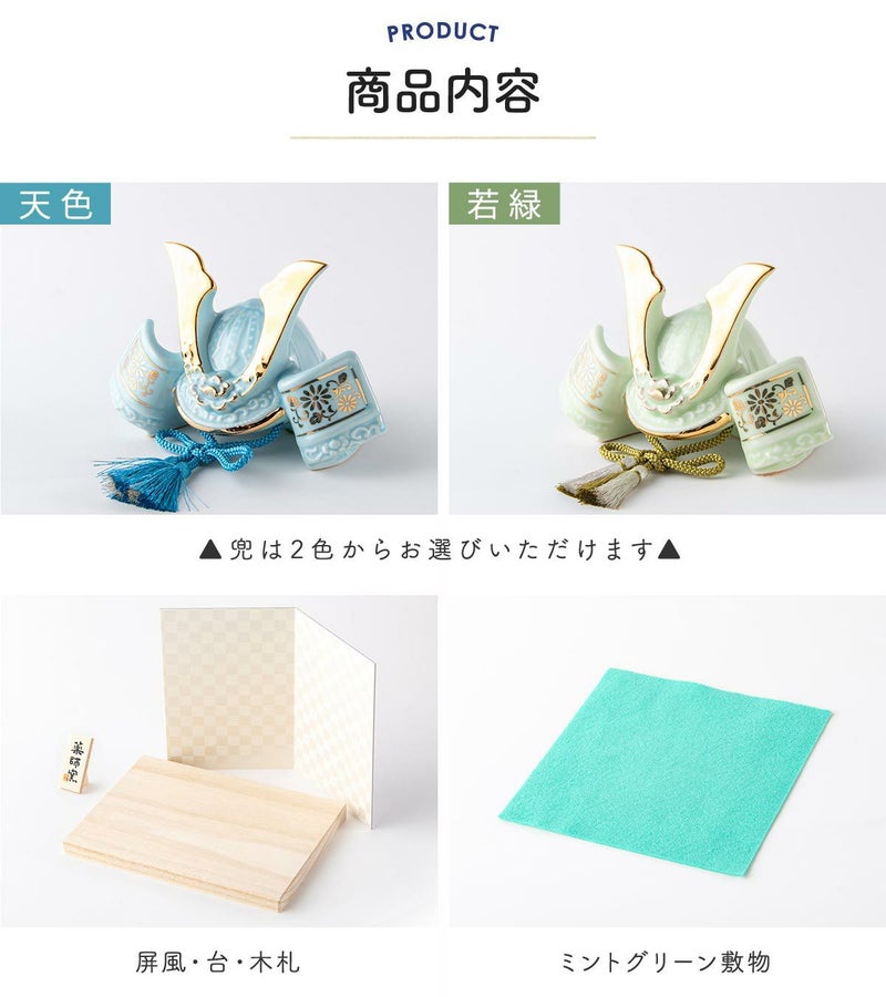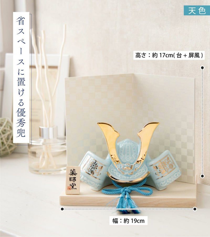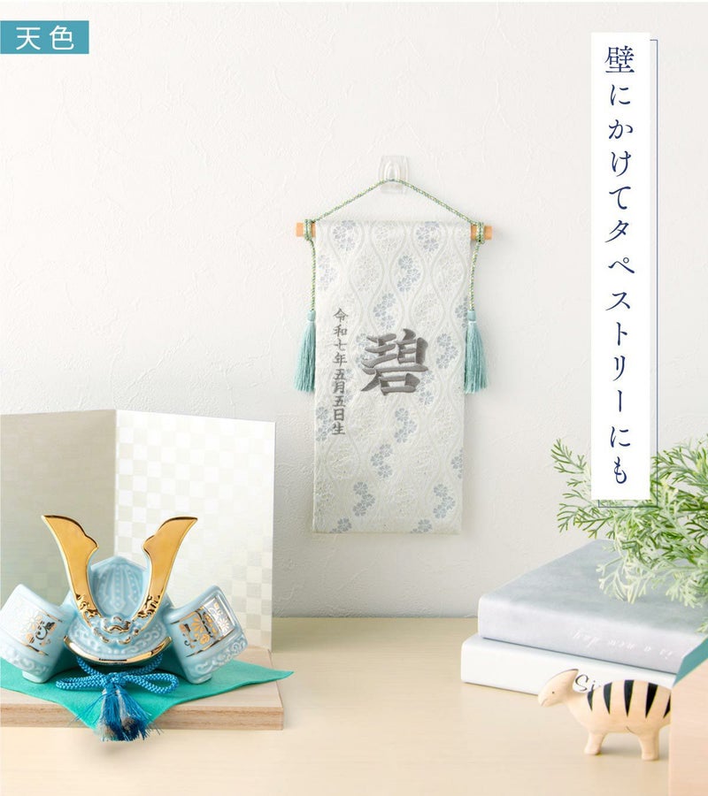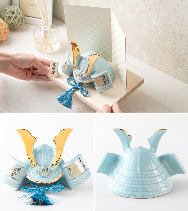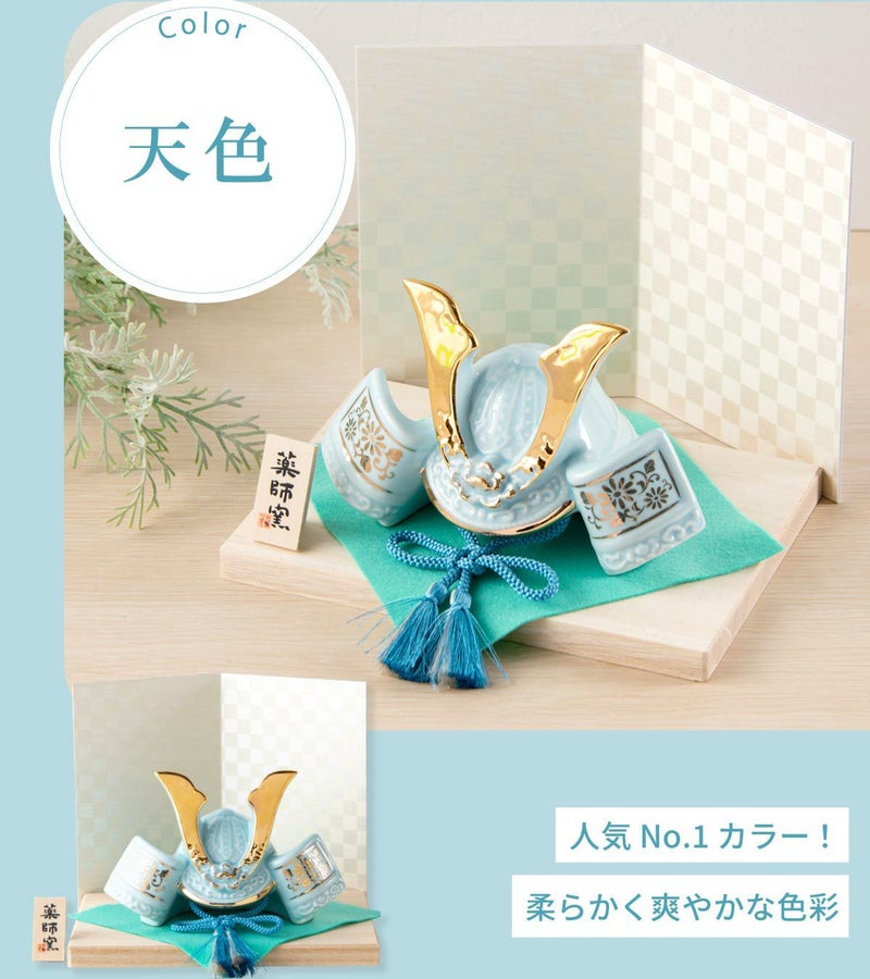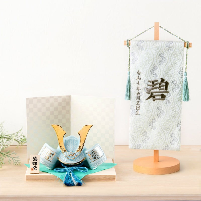 他の画像を見る 販売価格 ¥ 20,000 税込 おしゃれでモダンな五月人形! 端午の節句を華やかに! 省スペースで飾れる 【新作】五月人形 兜 兜飾り 陶器 コンパクト かわいい 初節句 西陣織名前旗セット 2026年 染絵出世兜 天色 若緑 薬師窯 送料無料 詳細を見る お気に入りに登録する