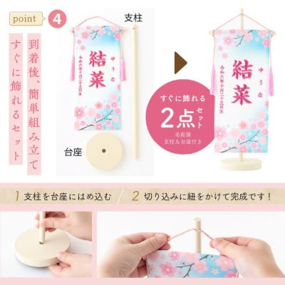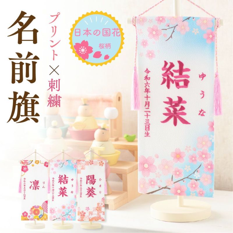 初節句のお祝いギフトにも最適! ひな人形と一緒に飾ればより一層華やかに! 名前旗 女の子 刺繍 雛人形 かわいい 桜 鞠 兎 うさぎ ちりめん 命名旗 刺繍旗