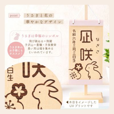 日本製 オリジナル木製名前旗 【名前旗オプション用】こちらの商品は、木製名前旗とご一緒にご購入ください。うさぎ柄プリント Sサイズ Mサイズ