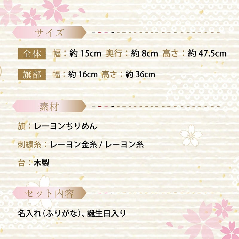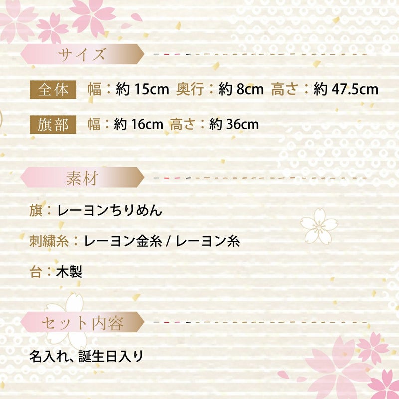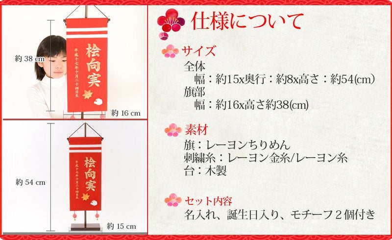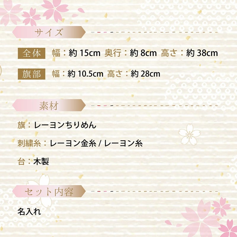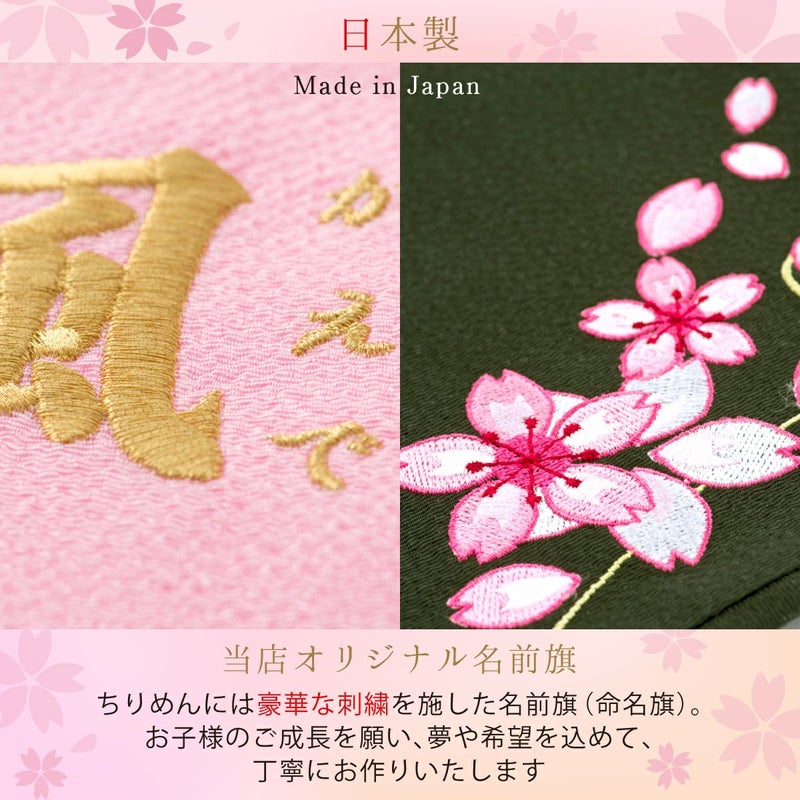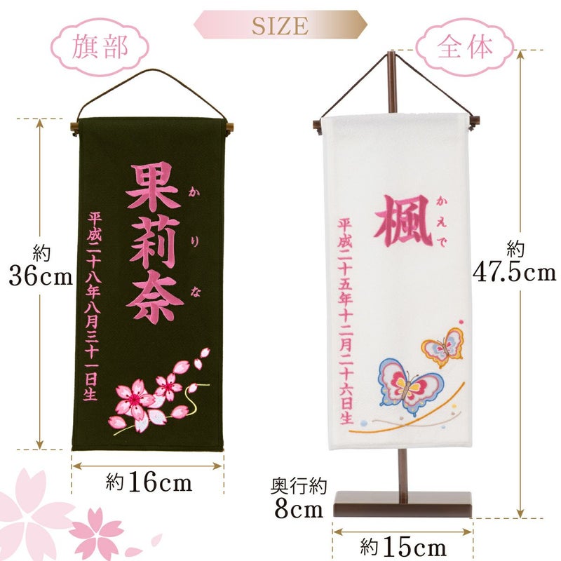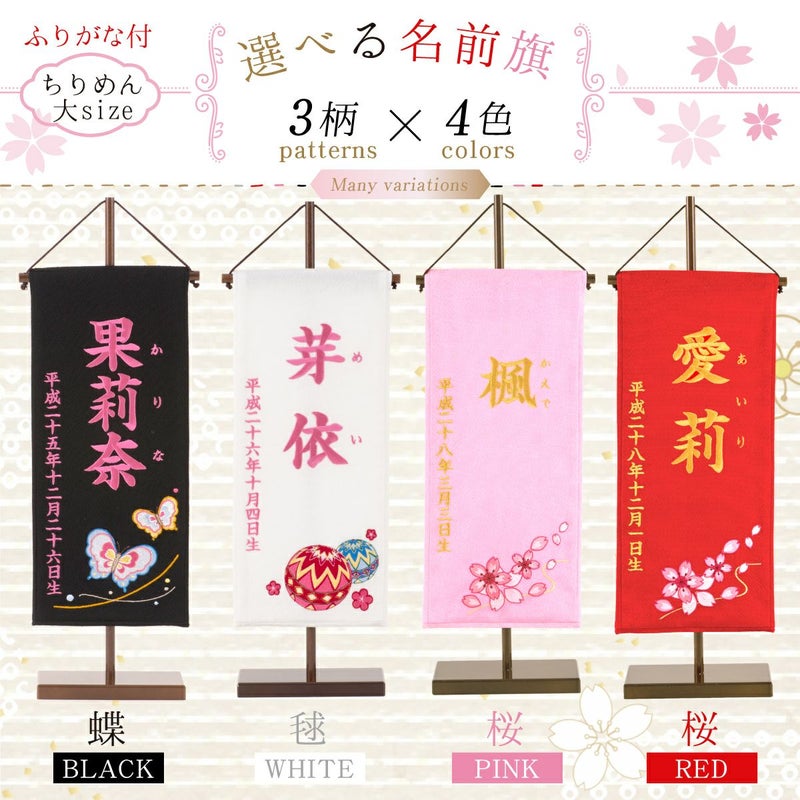 他の画像を見る 販売価格 ¥ 16,300 税込 初節句のお祝いギフトにも最適! ひな人形と一緒に飾ればより一層華やかに! 名前旗 女の子 刺繍 雛人形 かわいい 蝶 桜 鞠 ちりめん 命名旗 送料無料 詳細を見る お気に入りに登録する