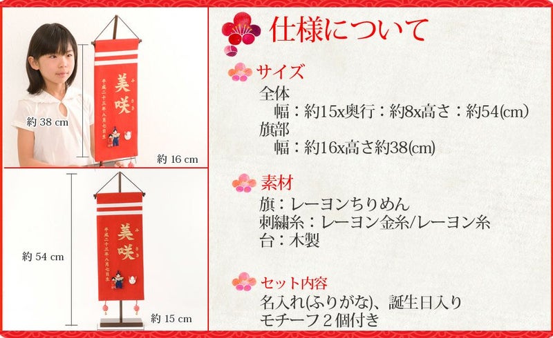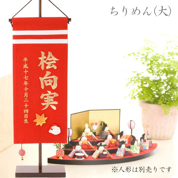 他の画像を見る 販売価格 ¥ 16,300 税込 初節句のお祝いギフトにも最適! ひな人形と一緒に飾ればより一層華やかに! 名前旗 女の子 刺繍 雛人形 かわいい 干支モチーフ ちりめん 命名旗 送料無料 詳細を見る お気に入りに登録する