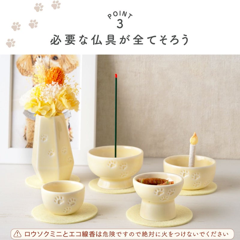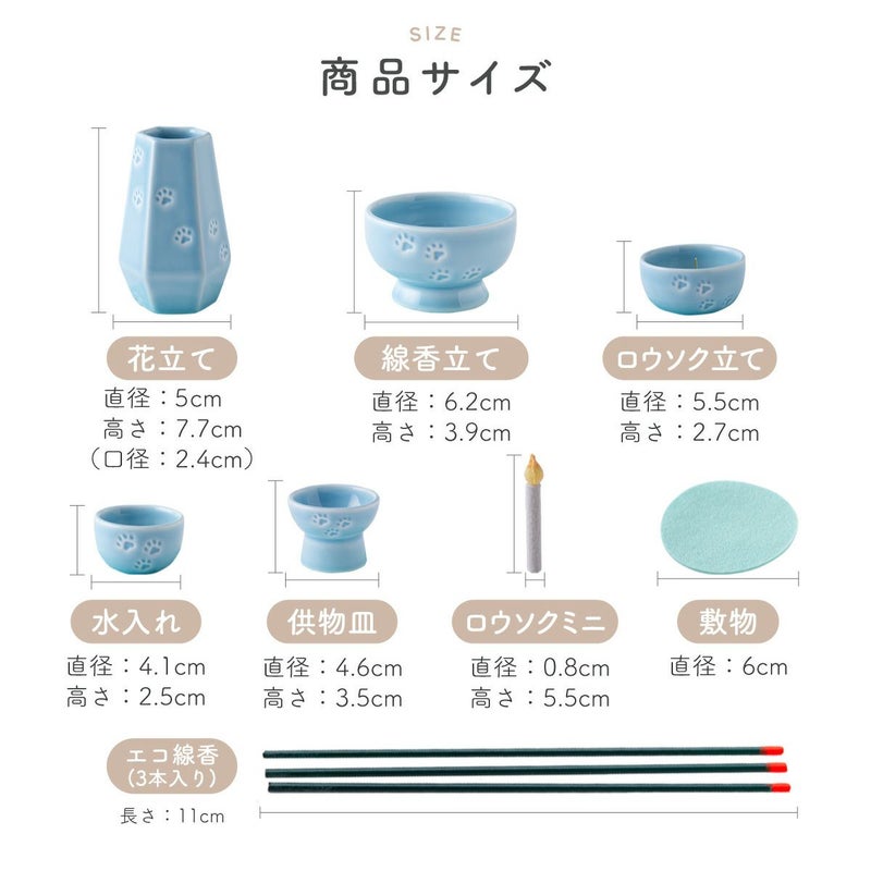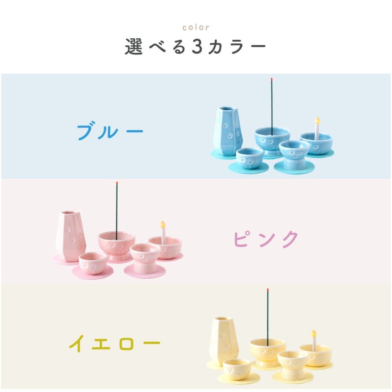 他の画像を見る 販売価格 ¥ 4,400 税込 〜 販売価格 ¥ 税込 お盆飾り お盆 お彼岸 命日 月命日 初盆 新盆 仏具 御先祖 先祖供養 夏 小さい 京都 リュウコドウ 京都 和雑貨 ペット メモリアル 供養 ペット供養 お供え 記念品 お悔やみ ペット仏具 5点セット(3色) 敷物付 エコ線香 ろうそくミニ 足あと 陶磁器 リュウコドウ 送料無料 詳細を見る お気に入りに登録する
