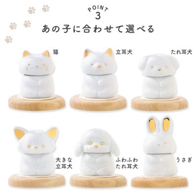 ペット メモリアル 供養 ペット供養 お供え 記念品 お悔やみ ペット仏具 ペット骨壺 永遠の愛(6種) 木製台付 置物 かわいい 陶磁器 置物 メモリアルグッズ リュウコドウ 犬 猫 動物 猫/立耳犬/たれ耳犬/大きな立耳犬/ふわふわたれ耳犬/うさぎ