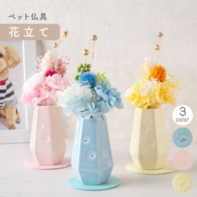 ペット メモリアル 供養 ペット供養 お供え 記念品 お悔やみ ペット仏具 花立て(3色)置物 かわいい 足あと 陶磁器 置物 メモリアルグッズ リュウコドウ 犬 猫 動物 ブルー/ピンク/イエロー