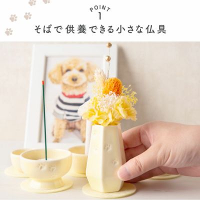 ペット メモリアル 供養 ペット供養 お供え 記念品 お悔やみ ペット仏具 花立て(3色) 敷物付 置物 かわいい 足あと 陶磁器 リュウコドウ