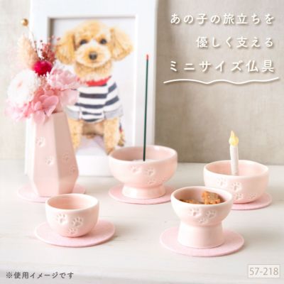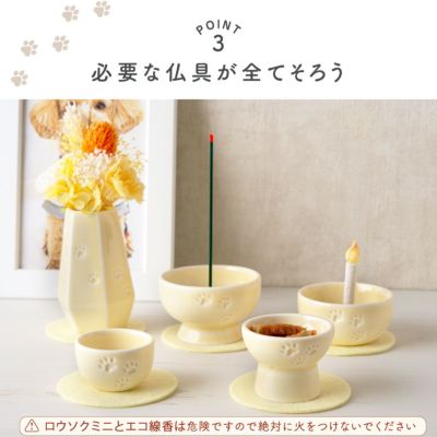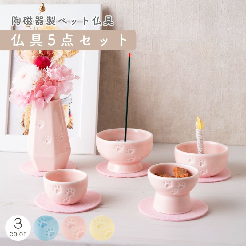 ペット メモリアル 供養 ペット供養 お供え 記念品 お悔やみ ペット仏具 5点セット(3色) 敷物付 エコ線香 ろうそくミニ 足あと 陶磁器 リュウコドウ
