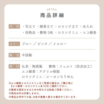 5点セット-陶磁器,ろうそくミニ-ちりめん,エコ線香-アクリル樹脂