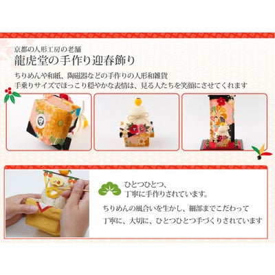 鏡餅を飾り始めるのは、早くても問題とはされないが12月28日が最適とされるようです。「八」が末広がりで日本では良い数字とされているようです。大安(12月31日を除く)を選んで供える地域もあるそうです。ちりめん 和雑貨 リュウコドウ 迎春飾り干支飾り 迎春飾り 正月飾りコンパクト 置物 正月飾り 吉祥 招福 鏡餅