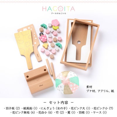 付属:羽子板2枚,お花(大)2個,お花(小・ピンク)7個,お花(小・白)6個,鶯,お花(小・無垢)4個,金無患子(むくろじ),竹2個,無患子(むくろじ)紙風船,お人形,フレーム,台座