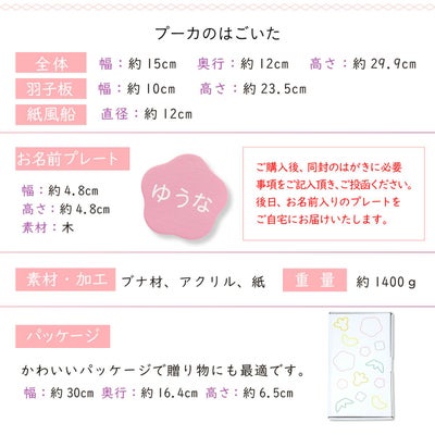 商品特徴:プーカシリーズに新たに「はごいた」が仲間入り。今までにない楽しんで飾れる木製の羽子板が出来ました。新年の願いを込めて、自由に飾ることが出来ます。