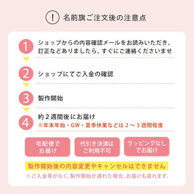 ご注文確定後、すぐに製作開始する場合がございますので、ご注文時にはお間違いのないようお気をつけください。