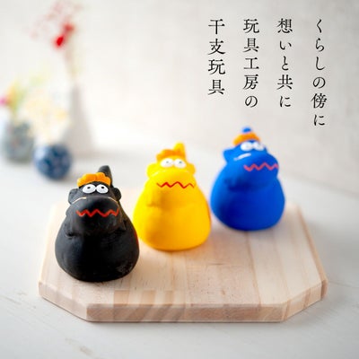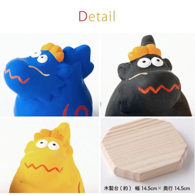 最安値!! 置物 干支飾り 辰 竜 龍 たつ【開運福辰 青/黒/黄セット木製台付】迎春飾り 新作 ミニ お正月飾り 陶器 陶磁器