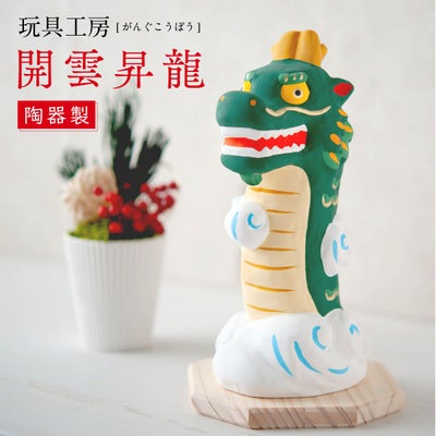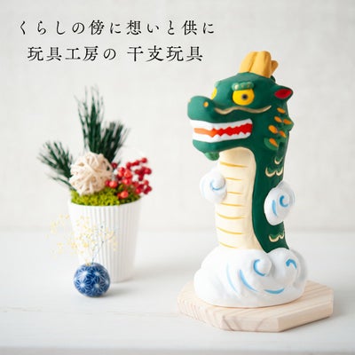◆干支飾り 2024年 辰 竜 龍 たつ【開運昇龍 木製台付】迎春飾り 新作 正月飾りお正月 ミニ お正月飾り 迎春準備 陶器 陶磁器 縁起飾り 置物 お店のディスプレイに 玄関飾りに 和雑貨 玩具工房◆