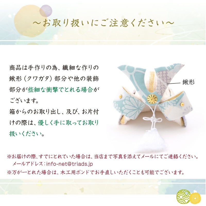 他の画像を見る 定価 ¥ 13,200 のところ 販売価格 ¥ 13,200 税込 詳細を見る お気に入りに登録する 送料無料 おしゃれでモダンな五月人形! 端午の節句を華やかに! 省スペースで飾れる 五月人形 兜 兜飾り コンパクト かわいい 初節句 桐箱セット ケース飾り 2026年 染絵出世兜飾り 白藍 漆黒 薬師窯