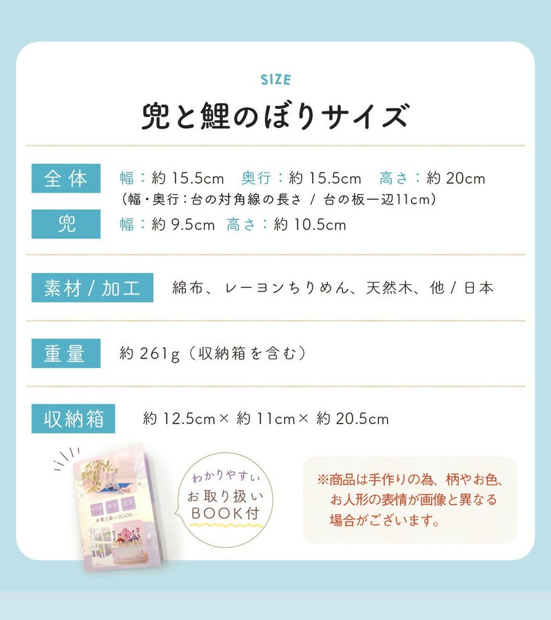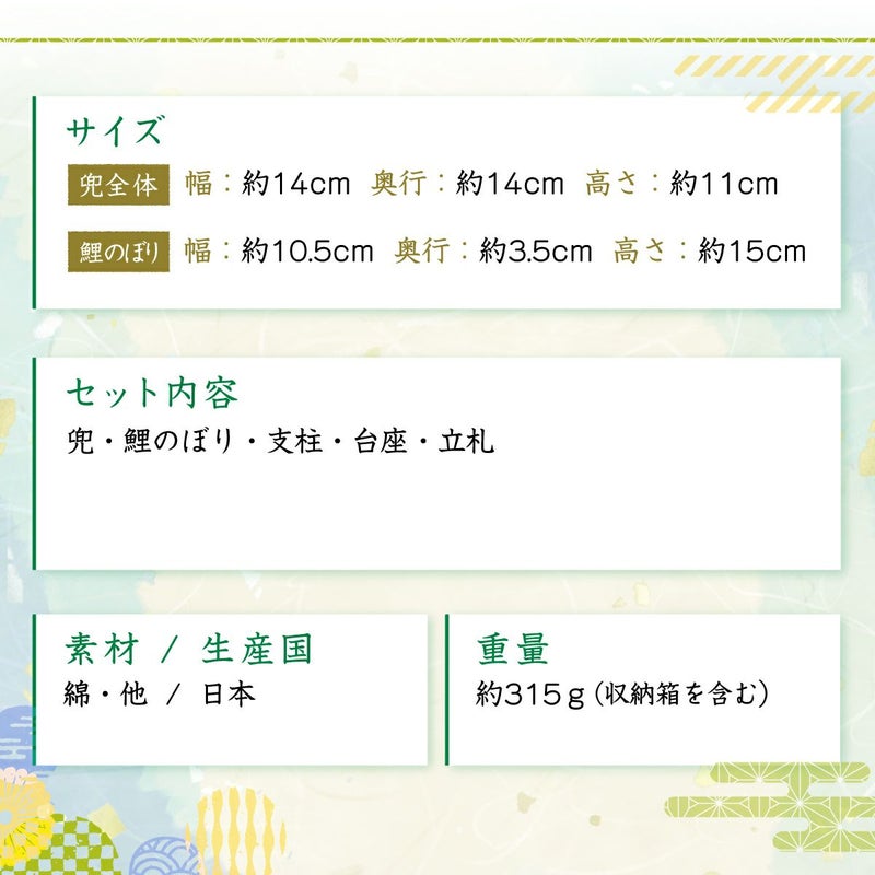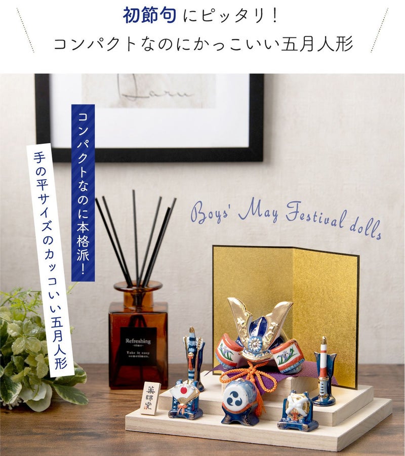 他の画像を見る 定価 ¥ 2,420 のところ 販売価格 ¥ 2,420 税込 カートに入れる お気に入りに登録する おしゃれでモダンな五月人形! 端午の節句を華やかに! 省スペースで飾れる 五月人形 兜 兜飾り コンパクト かわいい 初節句 2026年 錦彩鯉のぼりセット(土鈴・三色)薬師窯