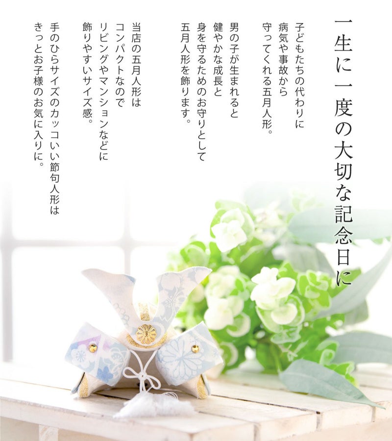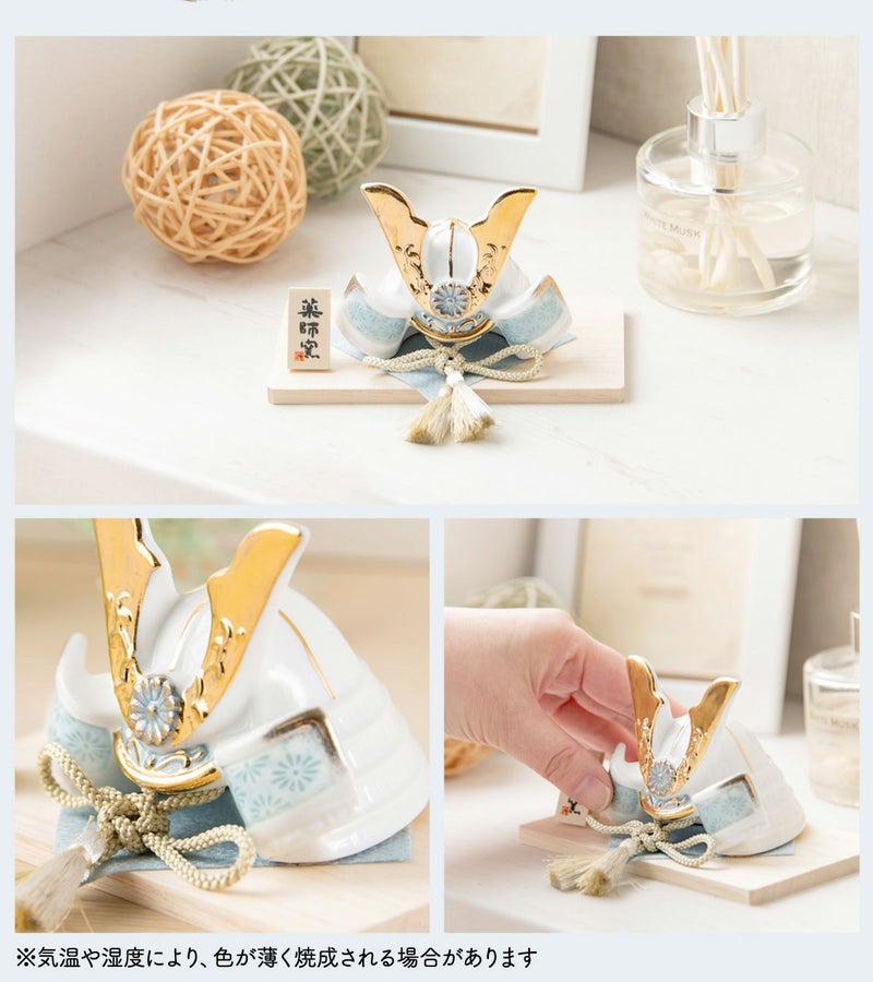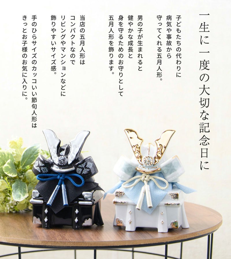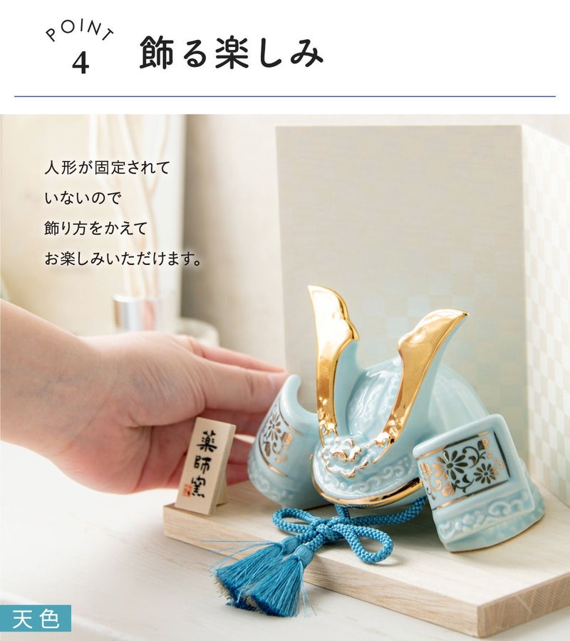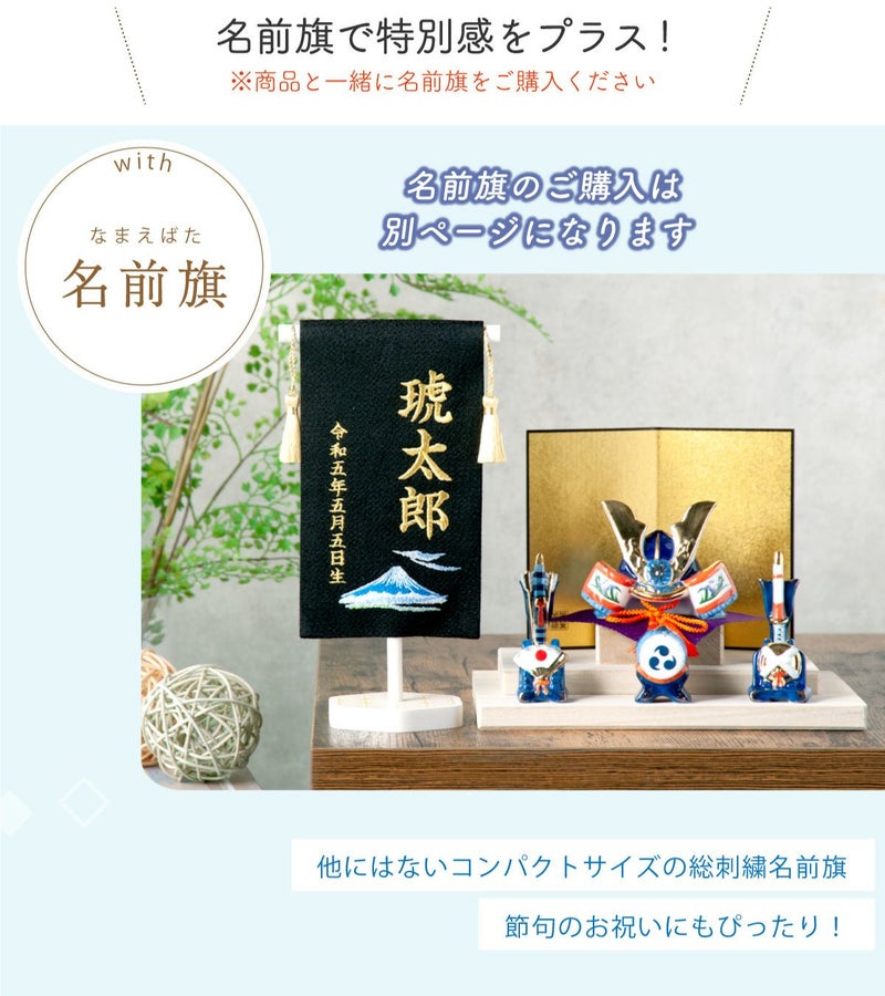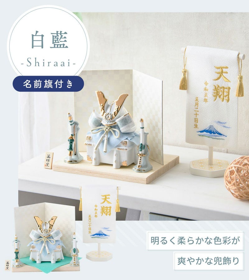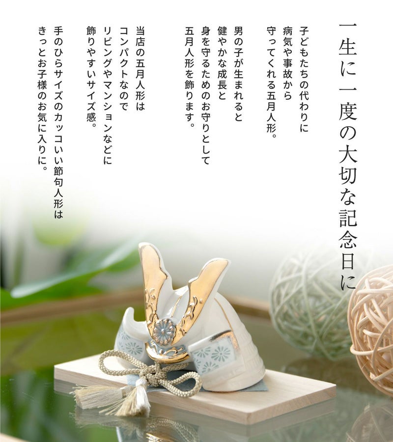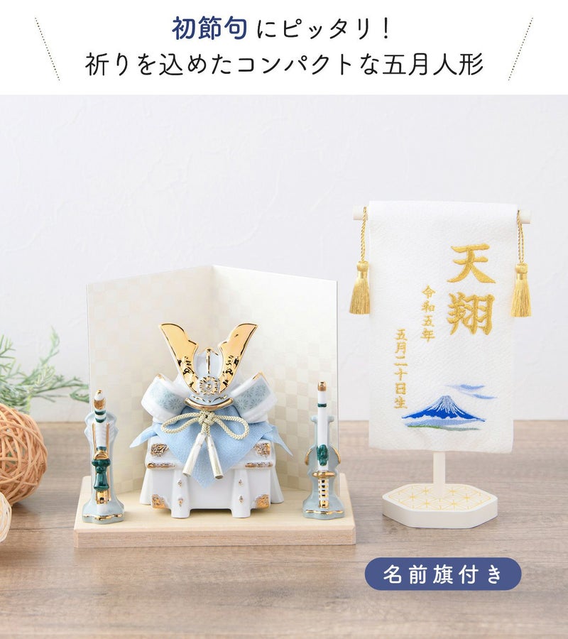 他の画像を見る 販売価格 ¥ 20,000 税込 詳細を見る お気に入りに登録する 送料無料 おしゃれでモダンな五月人形! 端午の節句を華やかに! 省スペースで飾れる 【新作】五月人形 兜 兜飾り 陶器 コンパクト かわいい 初節句 西陣織名前旗セット 2026年 染絵出世兜 天色 若緑 薬師窯