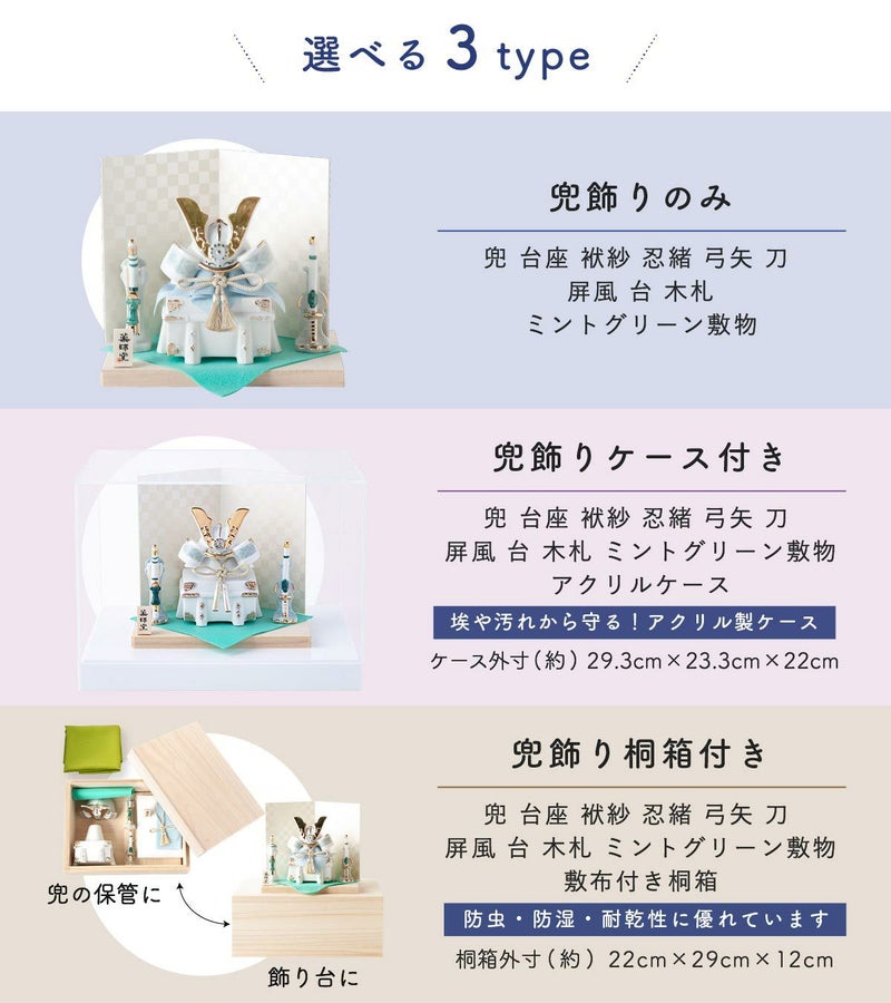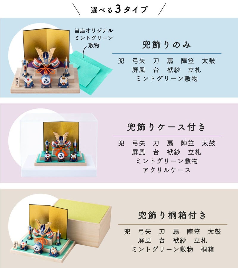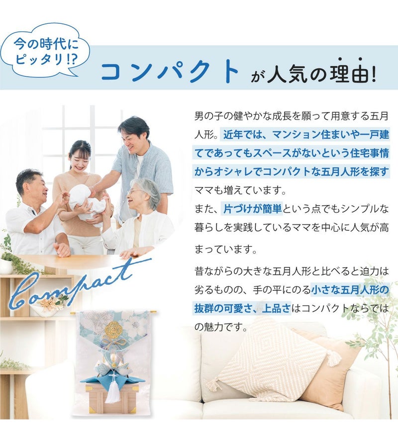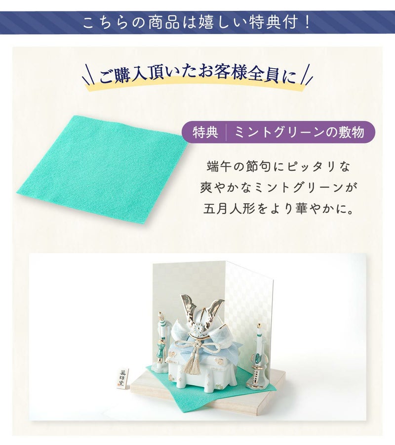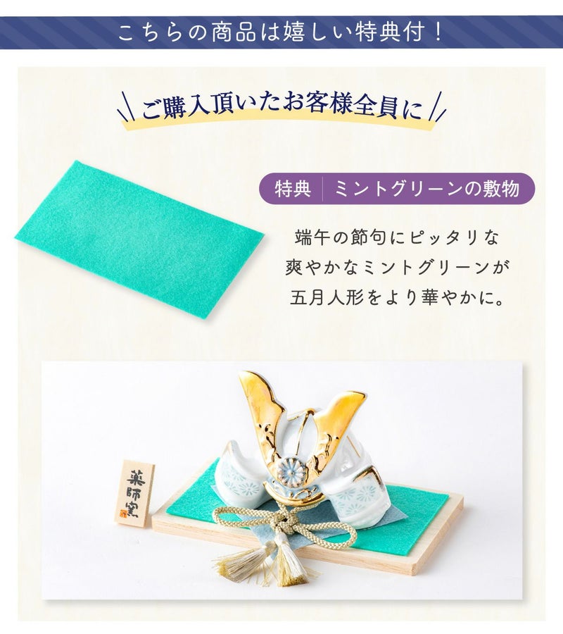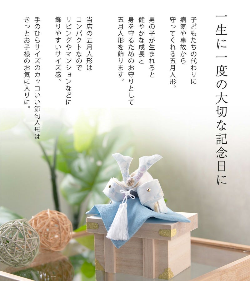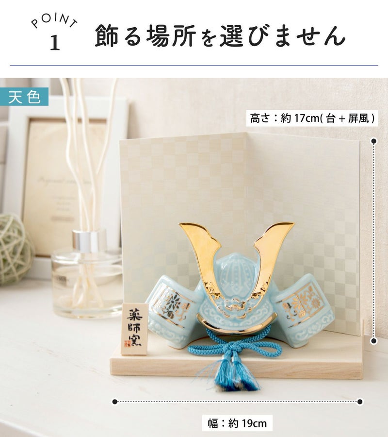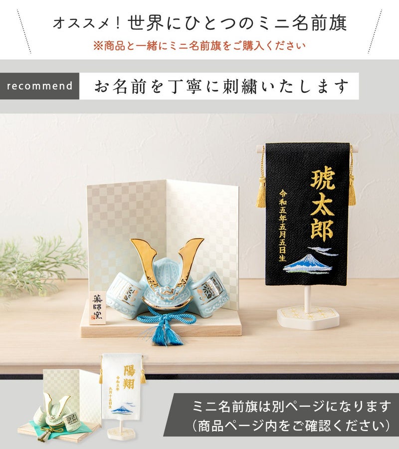 他の画像を見る 販売価格 ¥ 20,000 税込 詳細を見る お気に入りに登録する 送料無料 おしゃれでモダンな五月人形! 端午の節句を華やかに! 省スペースで飾れる 【新作】五月人形 兜 兜飾り 陶器 コンパクト かわいい 初節句 西陣織名前旗セット 2026年 染絵出世兜 天色 若緑 薬師窯